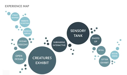 This project was designed for the course Designing Experiences at UCLA Extension. Shown here are renders, diagrammatic CAD drawings, guest personas, promotional graphics, and product designs. This sampling is an excerpt from the final exhibit deck.